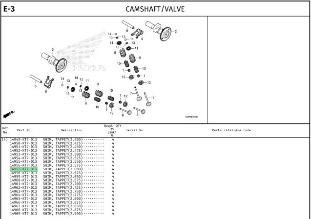 SHIM,TAPPET(2.600) CBR150
